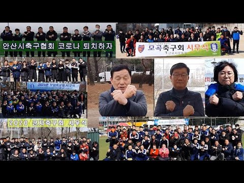 한국 코로나19 퇴치하자 코로나 퇴치운동 안산시축구협회에서 코로나19 퇴치운동 캠페인을 벌이고 있다 국회의원 김철민, 전해철, 김현, 지역축구회